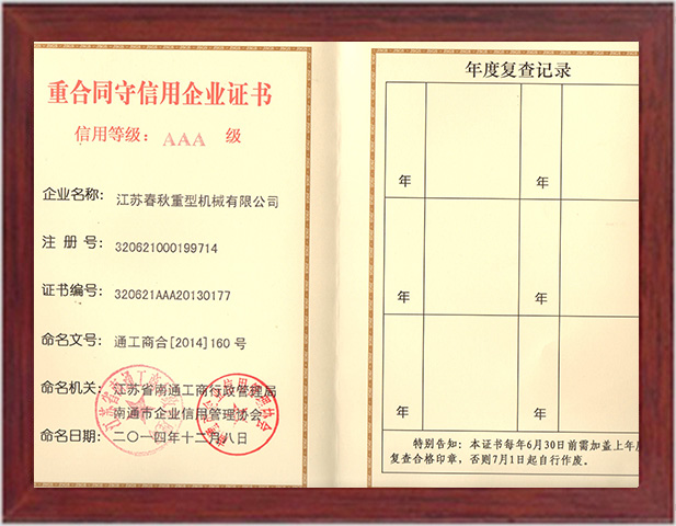 3A質(zhì)量信譽企業(yè)