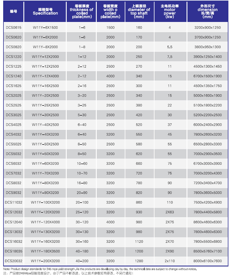 W11Y-液壓對稱式(油缸下置)卷板機引進日本技術生產。油缸安裝在上輥的上方。上輥在兩下輥中央對稱位置作垂直升降運動。可以卷制弧形、圓形、錐形等工件。